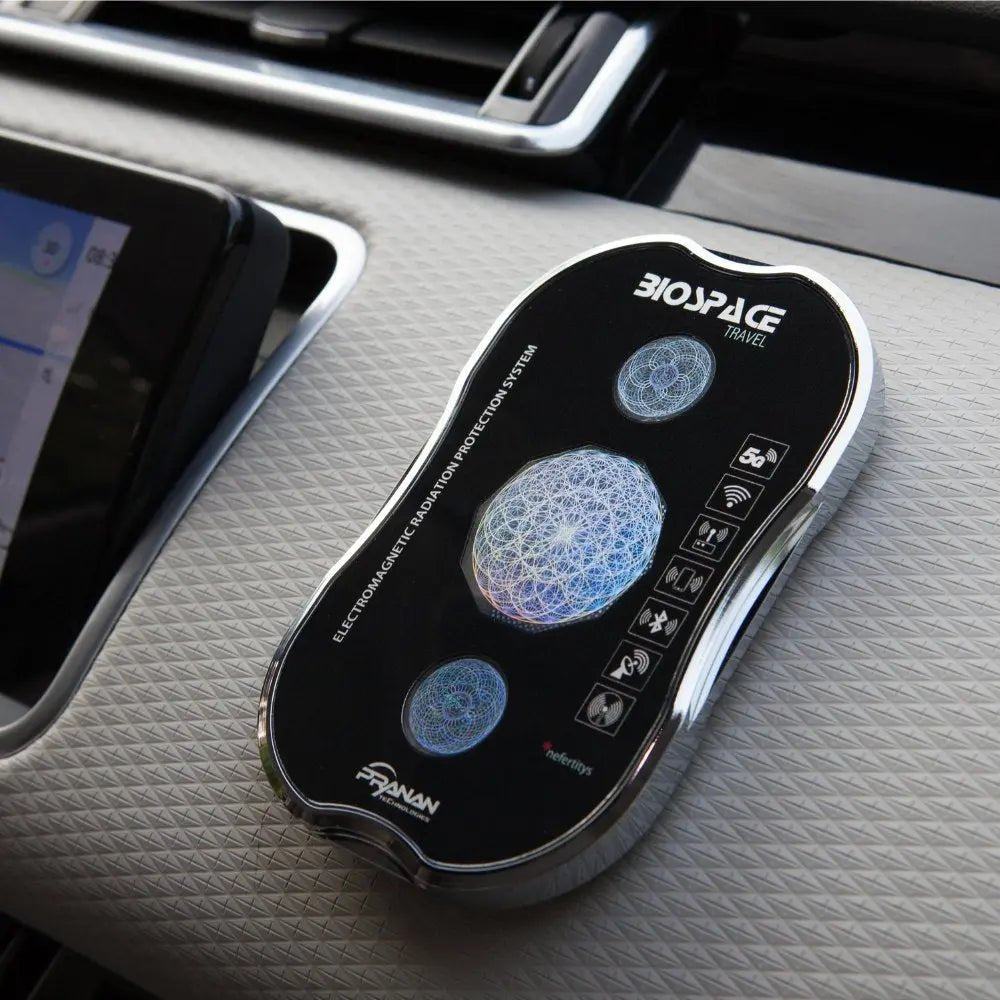 The Biospace Travel diamond is a ground-breaking solution with graphene & nanodiamond technology that enables you to travel in safety when exposed to high levels of electromagnetic radiation 5G+. This EMF Protection Device is perfect for use in your full electric or hybrid electric vehicle as well as airline travel.